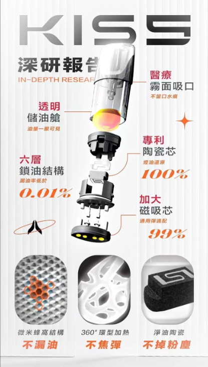 本機支援 兩種調節模式,可根據個人喜好自由切換,滿足不同吸阻與煙霧量需求。內置高效電池,續航表現優異,讓您安心使用一整天。鎧斯品牌一向以品質與安全著稱,KIS5 主機更採用智能晶片控制,避免過熱與過充,保障每一次使用的安全性。